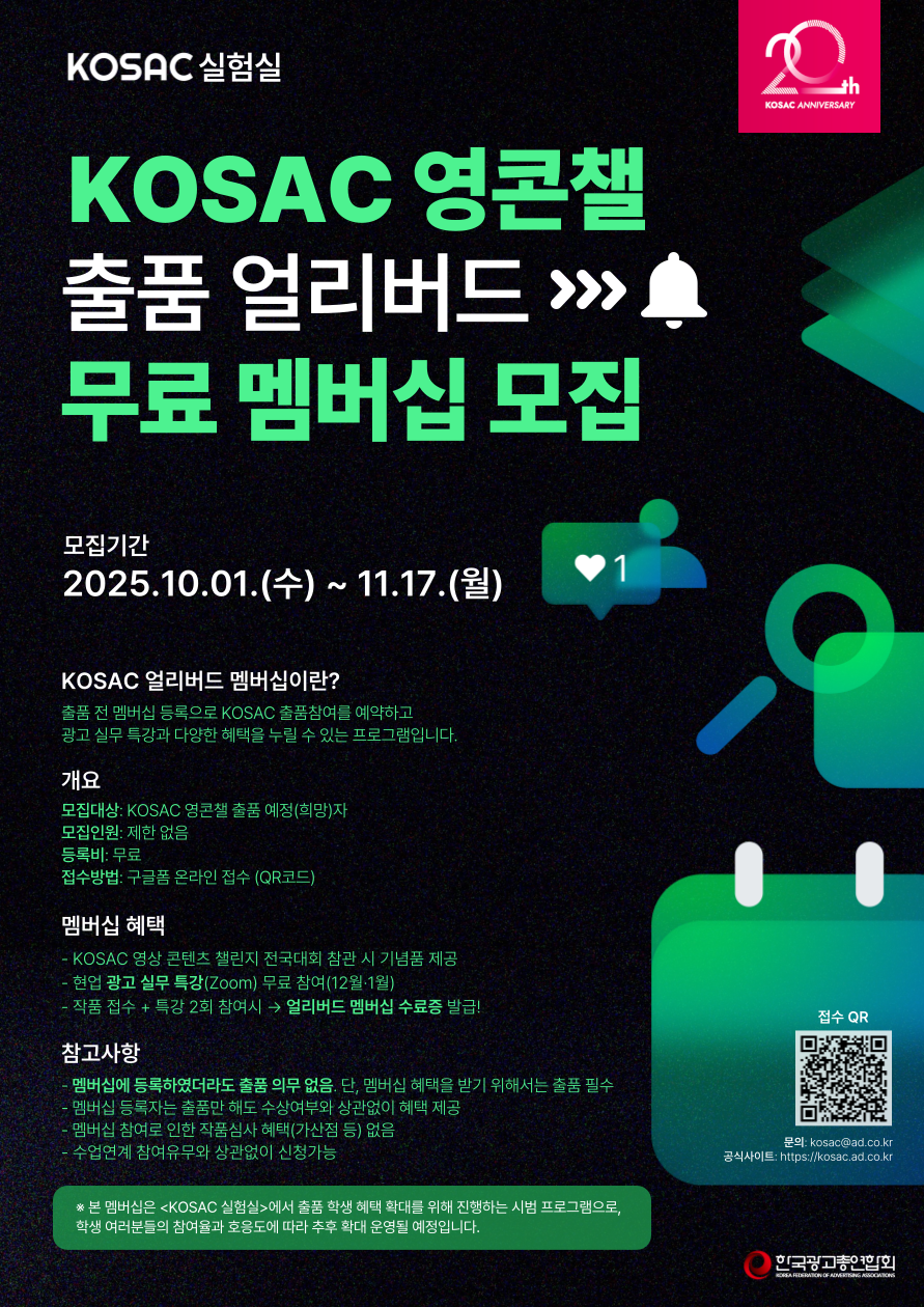 2025 KOSAC 영콘챌 출품 얼리버드 무료 멤버십 모집(연장)